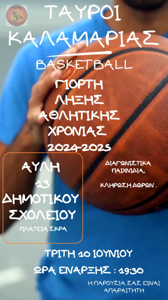 Η αθλητική χρονιά 2024-2025 τελειώνει για τους Ταύρους Καλαμαριάς και ως επιστέγασμα της προσπάθειας των παιδιών αλλά και των γονέων τους, θα κάνουμε μια όμορφη και λιτή τελετή-γιορτή λήξης της χρονιάς αυτής.