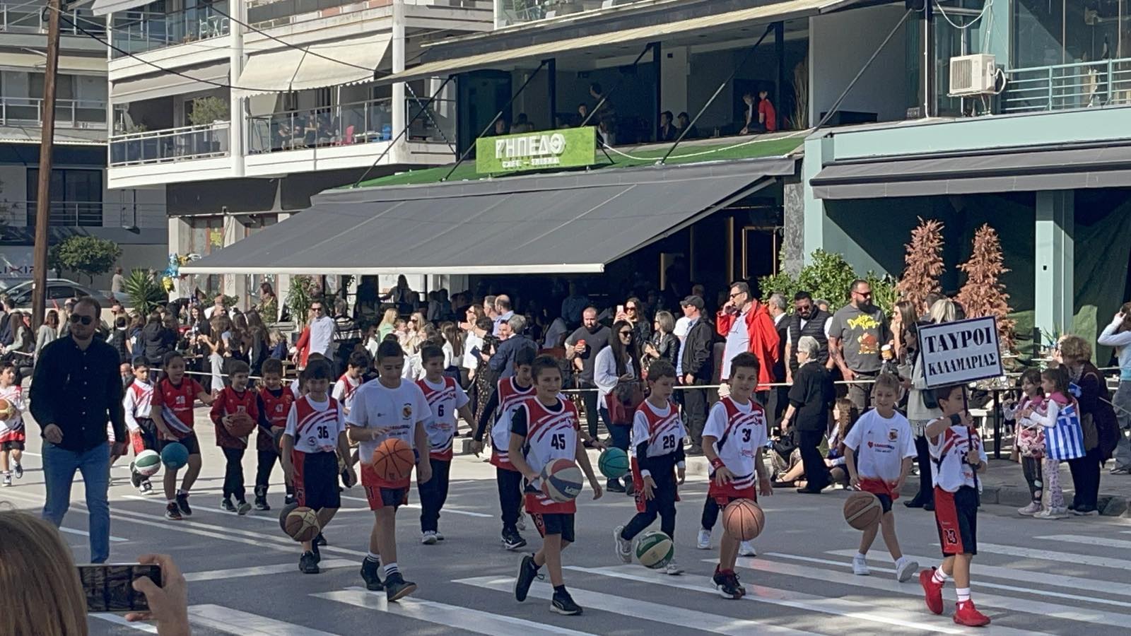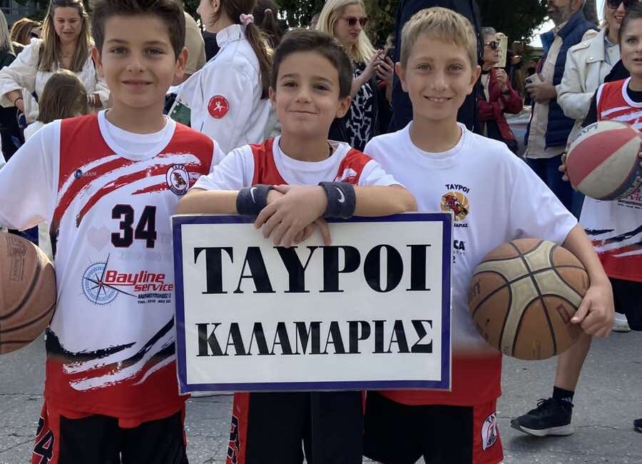 Οι μικροί αθλητές των Ταύρων Καλαμαριάς συμμετείχαν με χαμόγελο και ενθουσιασμό στην παρέλαση του Δήμου Καλαμαριάς, τιμώντας την εθνική επέτειο του ΟΧΙ.